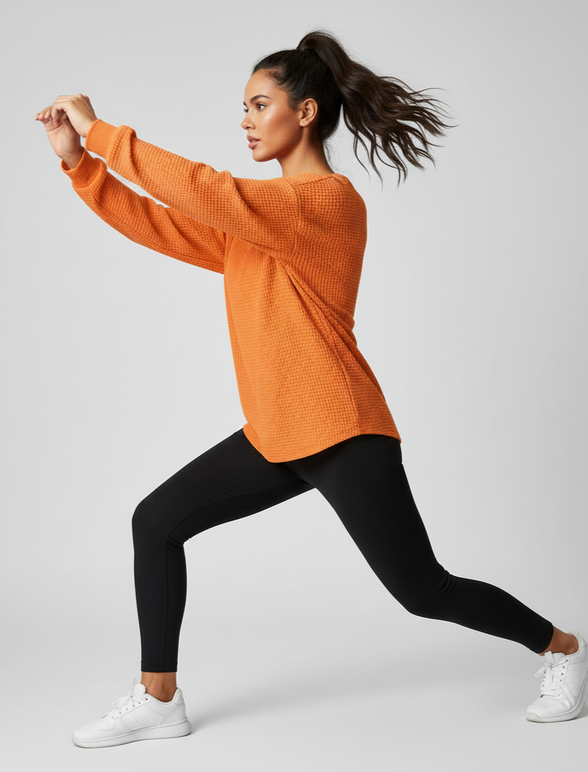 Omarm een perfecte mix van comfort en casual chic met onze Wafel Henley Trui in een opvallende, energieke oranje kleur. De trui is vervaardigd uit een zachte, wafelgebreide (thermal knit) stof die zorgt voor een aangename textuur, warmte en een ademend gevoel.