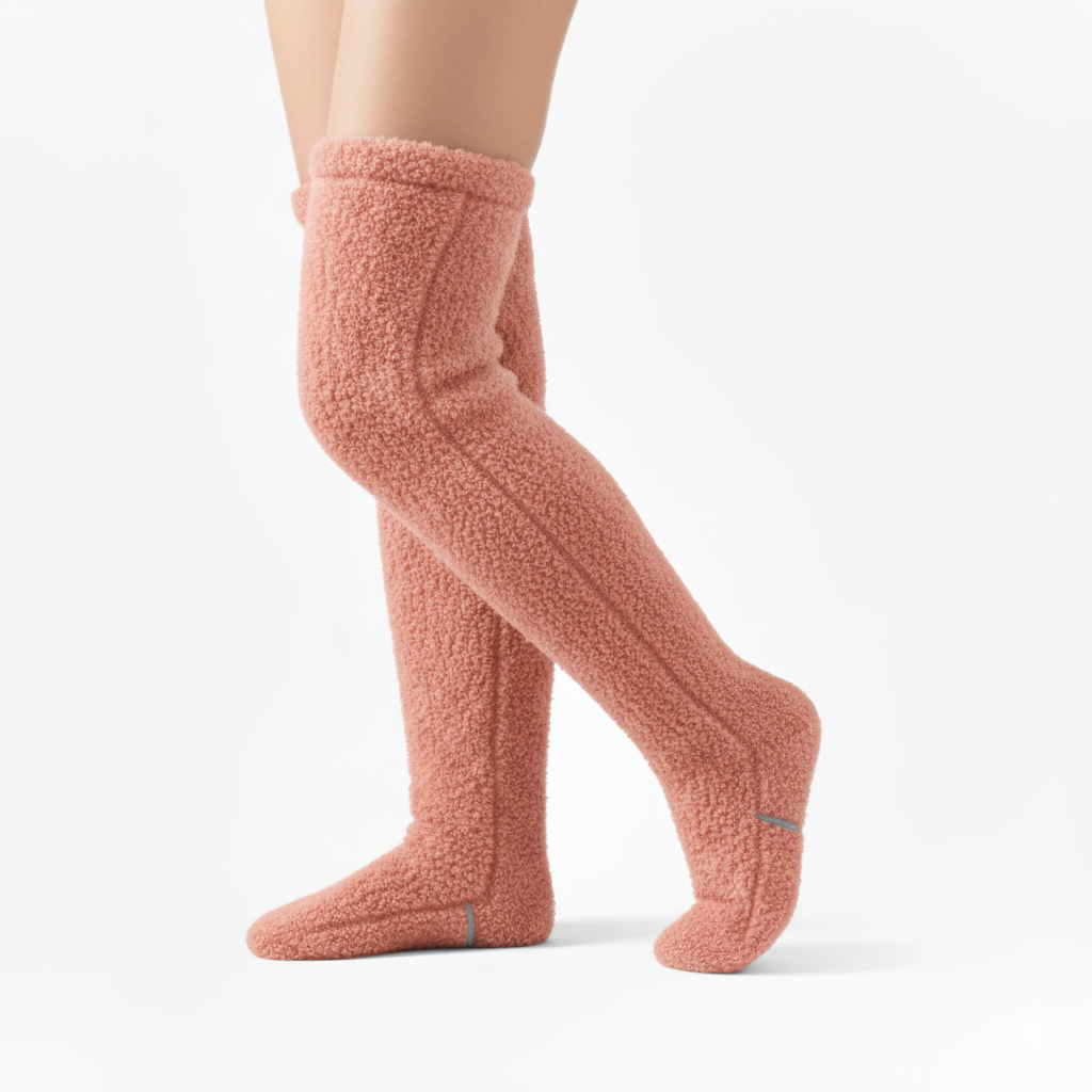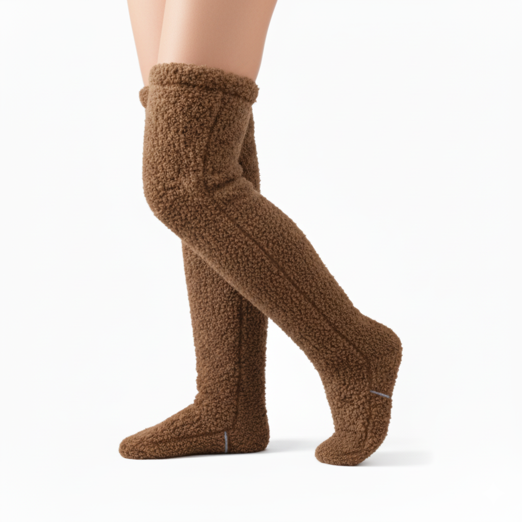 Deze heerlijk lange huissokken zijn gemaakt van superzacht teddy-fleece dat je benen omhult als een warme wolk. Ideaal voor koude winterdagen, luie avonden op de bank of zelfs als extra laagje in bed.